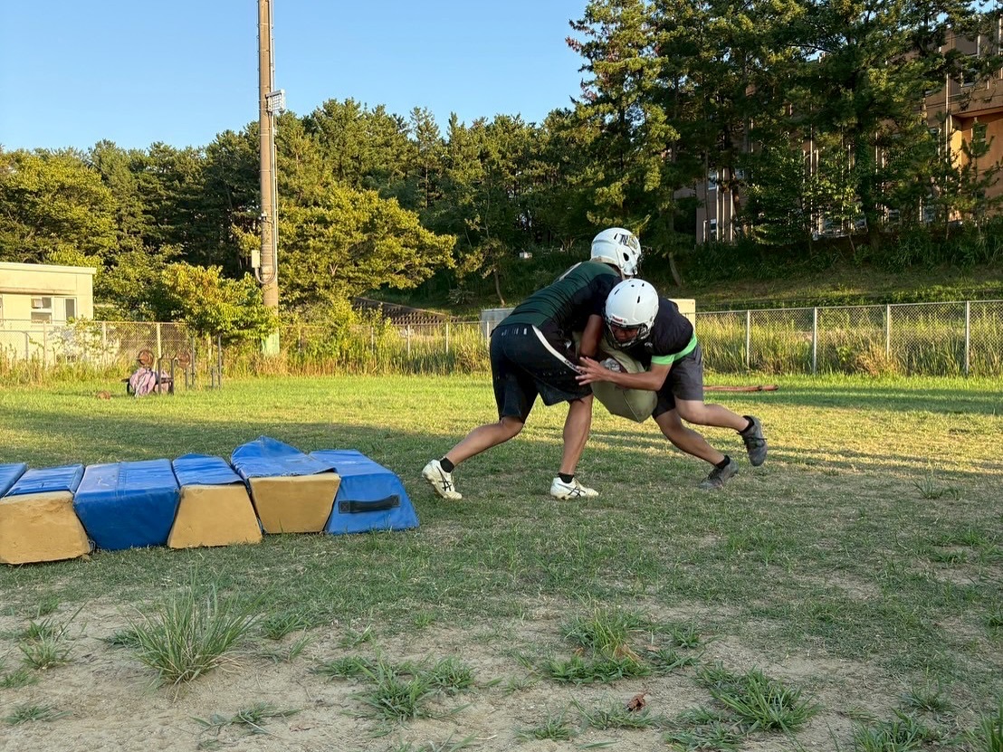 - 【夏の二部練最終日】 夏の二部練はついに最終日を迎えました️ 午前中は、二部練の集大成となる試合に近い形での合わせ練習を行いました!暑い中でしたが、1つ1つのプレーに集中して取り組みました。本日も多くのOBの皆様に参加していただき、合わせ練習を行うことが出来ました!連日のOBの皆様からのご指導、誠に感謝申し上げます🏻♀️ 午後は午前で出た反省を元に、ポジション練習や合わせ練習を行いました。各々今自分に必要な練習を考えながら取り組むことができ、さらにレベルアップできたと思います🏾 また、二部練恒例!この5日間のMVP発表を行いました 今回のMVPは 1年RB/LB 大久保寿晄 2年OL/LB長澤諒昌 3年RB/DB 郡司琉偉 4年 AS(WR/DB) 岩坂大耀 となりました!おめでとうございます シーズン初戦まで残り2週間となりました!2部昇格を目指して選手・スタッフ共により一層努力して参ります🏻 応援よろしくお願い致します #
