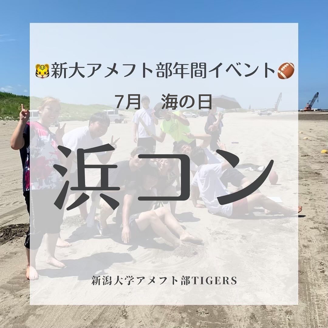 - 【新大アメフト部イベント紹介】 新大アメフト部には楽しめるイベントが盛りだくさん! その中のいくつかをご紹介します🏻 ①浜コン🏝 海の日に浜でレクリエーション「タッチフット」を行います! タッチフットとは簡易的なアメフトのこと! 昨年は雨天のため中止となってしまいましたが、例年の浜コンでは、選手・マネージャー・ポジションごちゃまぜのチームで、白熱の戦いが繰り広げられます レク終了後は、海で思う存分遊びます 同期だけでなく、優しくて頼もしい先輩たちと仲良くなれるのもアメフト部の魅力のひとつです! ┈┈┈┈┈┈┈┈┈┈ 見学・体験いつでもお待ちしています🏻 1人でも、お友だちとでも、途中参加・退出ももちろんOKです!見学の場合は私服で、体験の場合はぜひ動きやすい格好でお越しください!動きやすい服がない場合は貸出も行います ※練習日時は変更する場合があります。見学・体験を希望する方はぜひDMへご連絡ください 春休み期間練習(3/9~3/31) 晴天時:五十嵐キャンパス サッカー・ラグビー場 雨天時:五十嵐キャンパス第2体育館Bフロア 日時:水~日曜 9:00~12:00 質問などもDMでいつでも受け付けています! アメフト部のことだけでなく新生活に関することなど、どんな些細なことでもお気軽にご連絡ください🏻