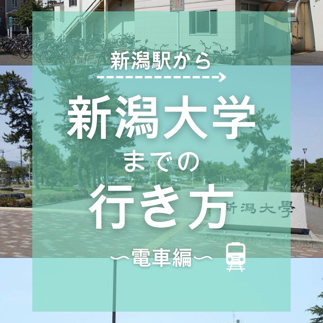 - 【新潟駅から新潟大学五十嵐キャンパスまでの行き方】 〜新潟駅から新潟大学前駅編〜 新潟駅から新潟大学五十嵐キャンパスまで、電車を使った行き方をご紹介します 新潟駅から新潟大学前駅までは6駅・電車で約20分! しっかり事前に行き方を確認しておけば、試験当日も安心です! 今週から新潟は雪が降る予報です️ 雪や風による電車の遅延が心配な方は、「どこトレ」と検索するのがおすすめです! 電車の状況がリアルタイムで見られます! 電車だけでなくバスで行く方法もあります🚎 毎年、新潟駅から新潟大学五十嵐キャンパスまでの臨時バスの情報は新潟大学公式サイトに掲載されるので要チェックです #