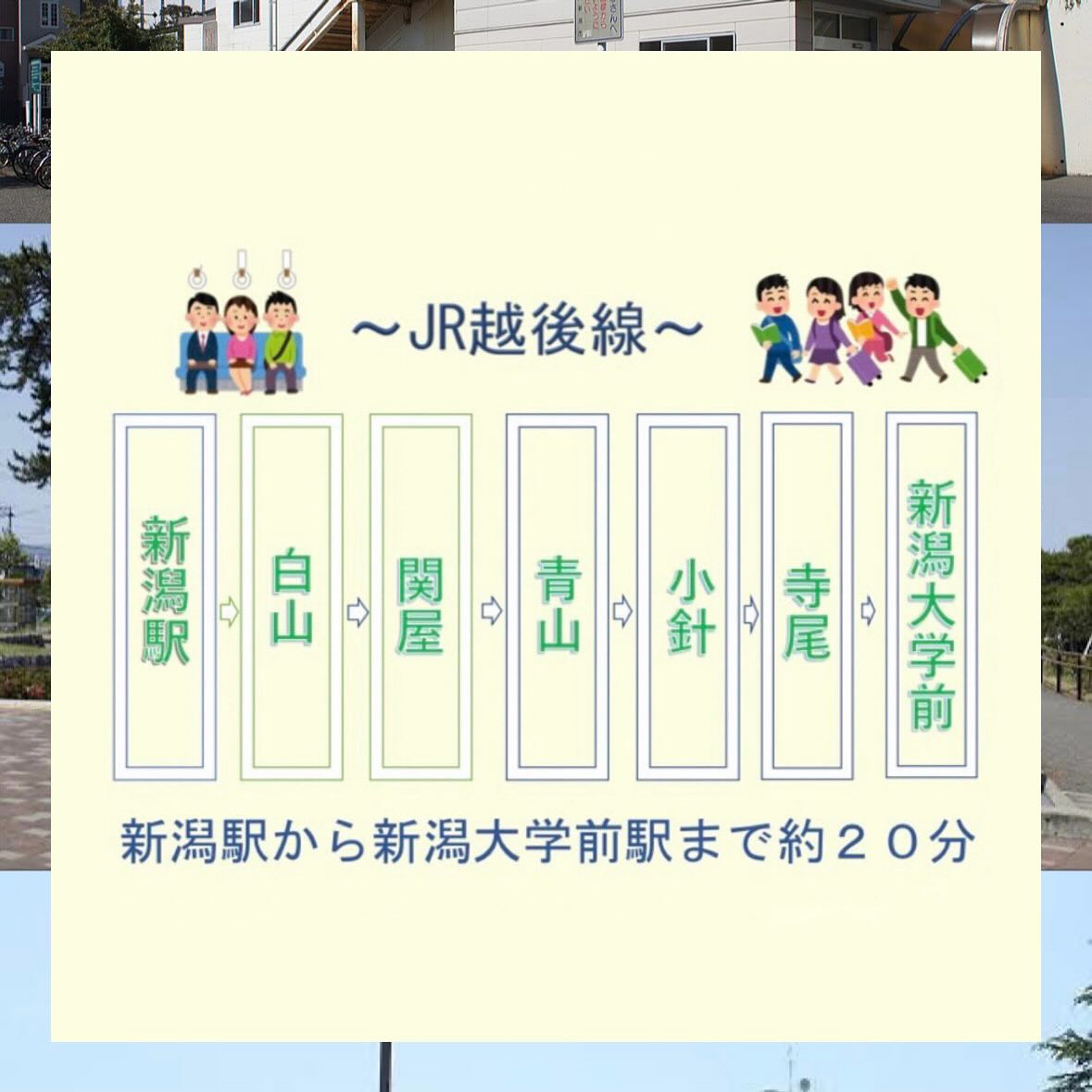 【新潟駅から新潟大学五十嵐キャンパスまでの行き方】 〜新潟駅から新潟大学前駅編〜 新潟駅から新潟大学五十嵐キャンパスまで、電車を使った行き方をご紹介します 新潟駅から新潟大学前駅までは6駅・電車で約20分! しっかり事前に行き方を確認しておけば、試験当日も安心です! 今週から新潟は雪が降る予報です️ 雪や風による電車の遅延が心配な方は、「どこトレ」と検索するのがおすすめです! 電車の状況がリアルタイムで見られます! 電車だけでなくバスで行く方法もあります🚎 毎年、新潟駅から新潟大学五十嵐キャンパスまでの臨時バスの情報は新潟大学公式サイトに掲載されるので要チェックです #