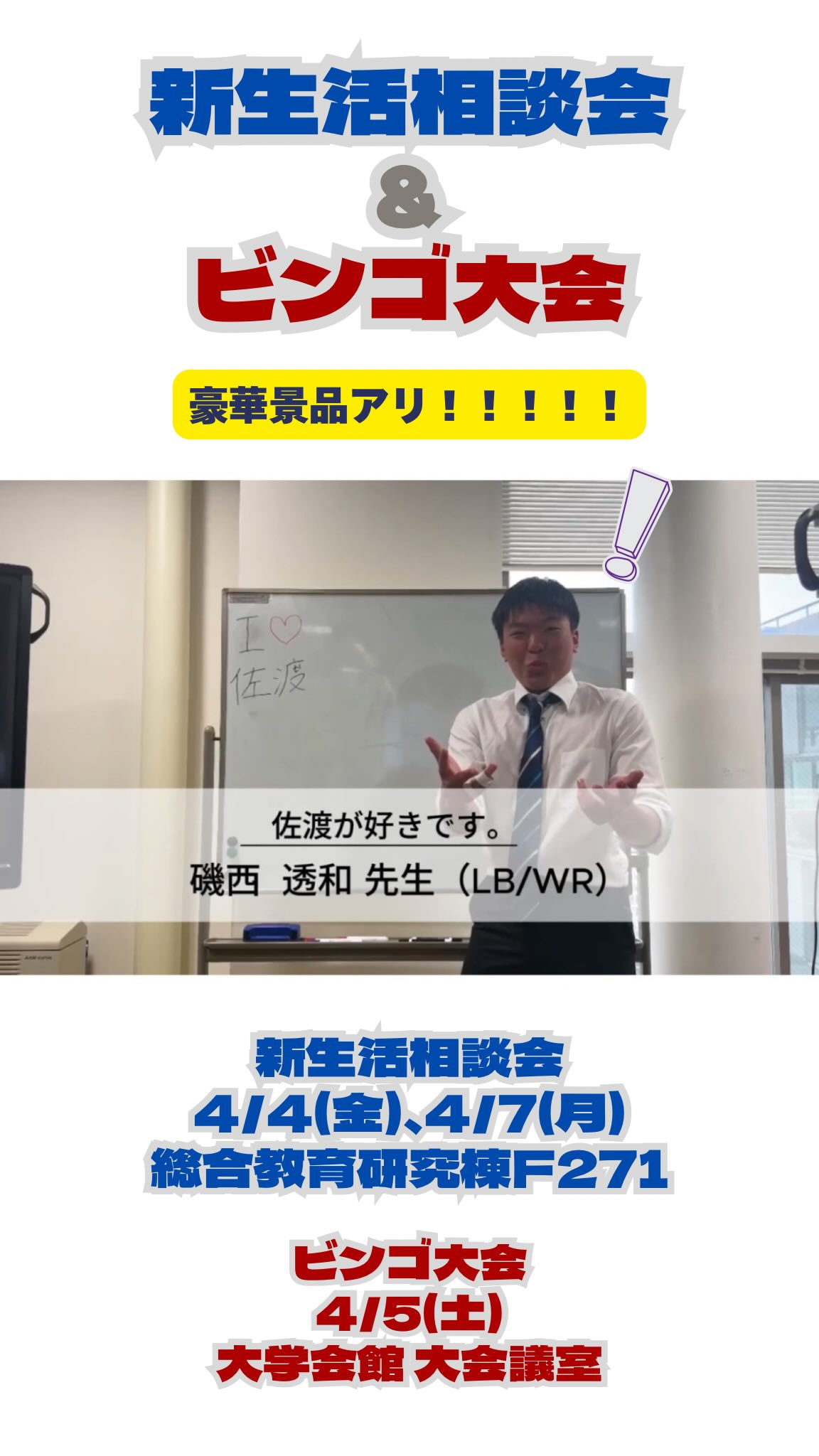 ãð£ïžæ°ç掻çžè«äŒïŒãã³ãŽå€§äŒã æ°å€§ã¢ã¡ããéšã®å¡Ÿè¬åž«(ïŒ)ãã¡ããæ°å ¥çã®çæ§ãžãç¥ããã§ãïŒ 4/4(é)ã4/7(æ)ã«æ°ç掻çžè«äŒã4/5(å)ã«ã¯ãã³ãŽå€§äŒãéå¬ããŸãïŒ å€§åŠçæŽ»ãæ¥œããé 調ã«ã¹ã¿ãŒãããããââïž çžè«äŒã§ã¯çæ§ãæ±ãããææ¥ã倧åŠç掻ãžã®äžå®ãå šåã§è§£æ¶ã»ãµããŒãããããŸãïŒ ð倧åŠã®ææ¥ã£ãŠã©ããªæãïŒ ðã¬ããŒãã®æžãæ¹ãæããŠã»ããïŒ ðããœã³ã³ã£ãŠã©ããã£ãŠäœ¿ãã®ïŒ ðãã€ãã£ãŠã©ããªæãïŒ ã©ã®ãããªè³ªåã«ããæ§ã ãªåŠéšã®ã¢ã¡ããéšå¡ããçãããŸãð» çµäºåŸã¯ãã¯ãã«é£ããŠè¡ã£ãŠãããããã äŒå Ž 4/4(é)ã4/7(æ)ïžç·åæè²ç ç©¶æ£F271 4/5(å)ïžå€§åŠäŒé€š 倧äŒè°å®€ äŒå ŽãŸã§ã¯TIGERSã°ããºã身ã«ã€ããéšå¡ããæ¡å ããŸãð»ð» ââââââââââ èŠåŠã»äœéšãã€ã§ããåŸ ã¡ããŠããŸãð» 1人ã§ãããåã ã¡ãšã§ããéäžåå ã»éåºããã¡ããOKã§ãïŒèŠåŠã®å Žåã¯ç§æã§ãäœéšã®å Žåã¯ãã²åããããæ Œå¥œã§ãè¶ããã ããïŒåããããæããªãå Žåã¯è²žåºãè¡ããŸã â»æ¥æã¯å€æŽããå ŽåããããŸããèŠåŠã»äœéšãåžæããæ¹ã¯ãã²DMãžãé£çµ¡ãã ãã æ°ææéç·Žç¿ æŽå€©æïŒäºååµãã£ã³ãã¹ ãµãã«ãŒã»ã©ã°ããŒå Ž éšå€©æïŒäºååµãã£ã³ãã¹ç¬¬2äœè²é€šBããã¢ æ¥æïŒæ°Ž~éæ 17:00~ åã»æ¥æ 9:00~12:00 質åãªã©ãDMã§ãã€ã§ãåãä»ããŠããŸãïŒ ã¢ã¡ããéšã®ããšã ãã§ãªãæ°ç掻ã«é¢ããããšãªã©ãã©ããªäºçްãªããšã§ããæ°è»œã«ãé£çµ¡ãã ããð» #
