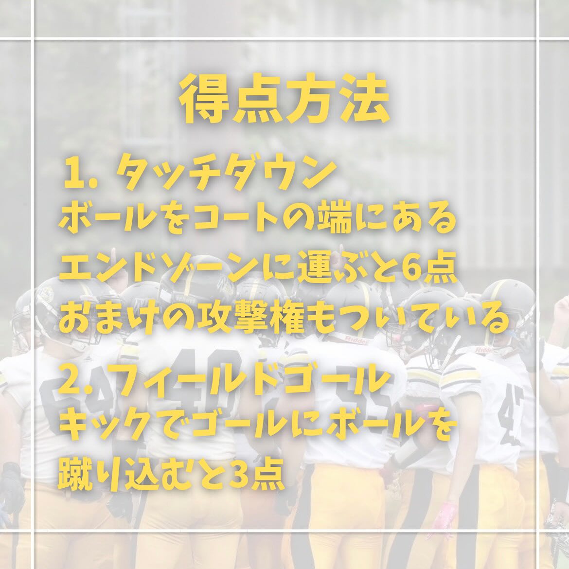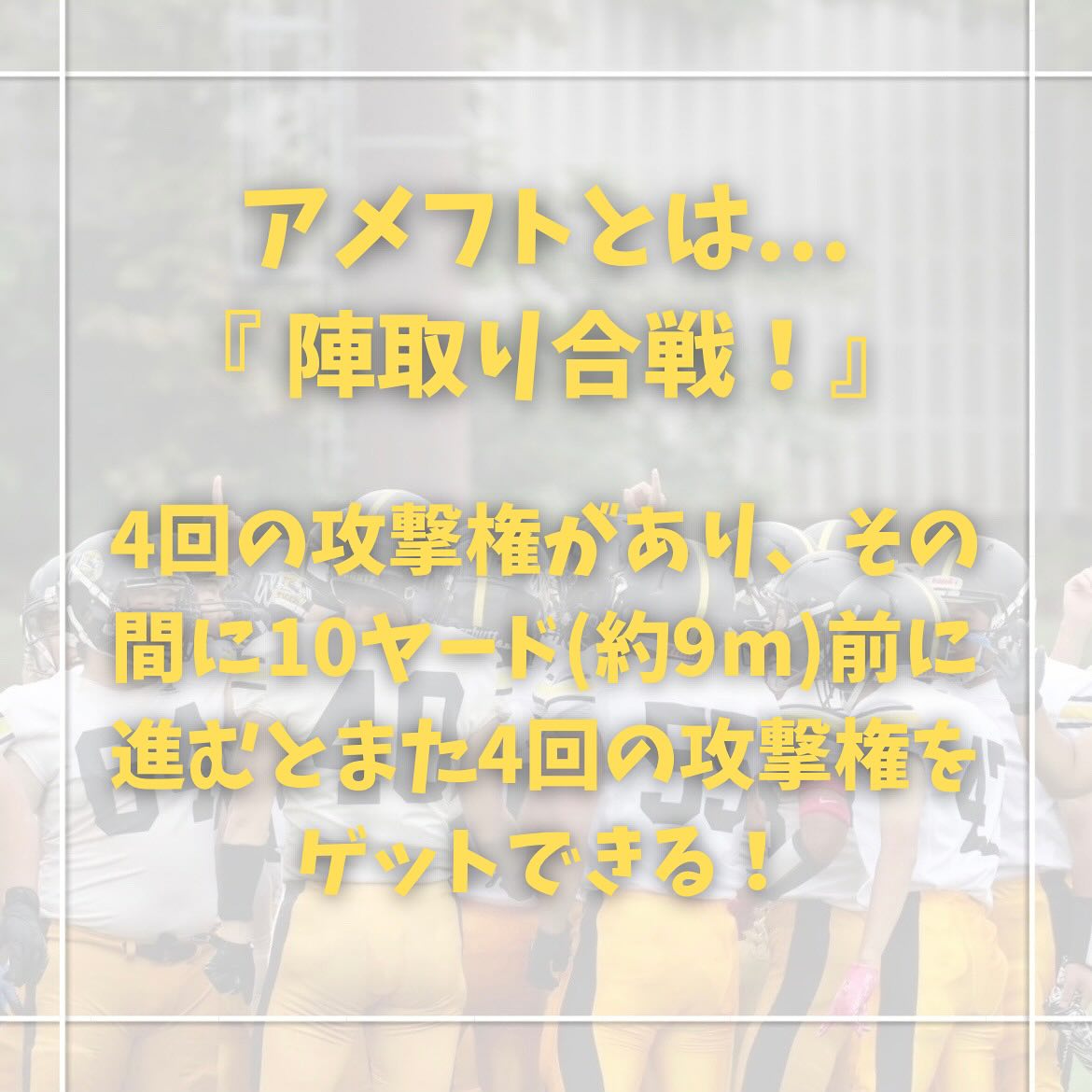 - 【アメフトのルール️】 明日はいよいよ黎明祭での新歓試合ですが、「アメフトのルールって何??」と思っている方がほとんどだと思います💭 そんなあなた! この投稿を見ればアメフトのことが少し分かり、試合観戦をもっと楽しめますよ! 当日は実況解説もあるので、この投稿だけで分からなくても全然大丈夫🏼! ぜひあの迫力をグラウンドで体感しよう ┈┈┈┈┈┈┈┈┈┈ 見学・体験いつでもお待ちしています🏻 1人でも、お友だちとでも、途中参加・退出ももちろんOKです!見学の場合は私服で、体験の場合はぜひ動きやすい格好でお越しください!動きやすい服がない場合は貸出も行います ※日時は変更する場合があります。見学・体験を希望する方はぜひDMへご連絡ください 新歓期間練習 晴天時:五十嵐キャンパス サッカー・ラグビー場 雨天時:五十嵐キャンパス第2体育館Bフロア 日時:水~金曜 17:00~ 土・日曜 9:00~12:00 質問などもDMでいつでも受け付けています! アメフト部のことだけでなく新生活に関することなど、どんな些細なことでもお気軽にご連絡ください🏻 #
