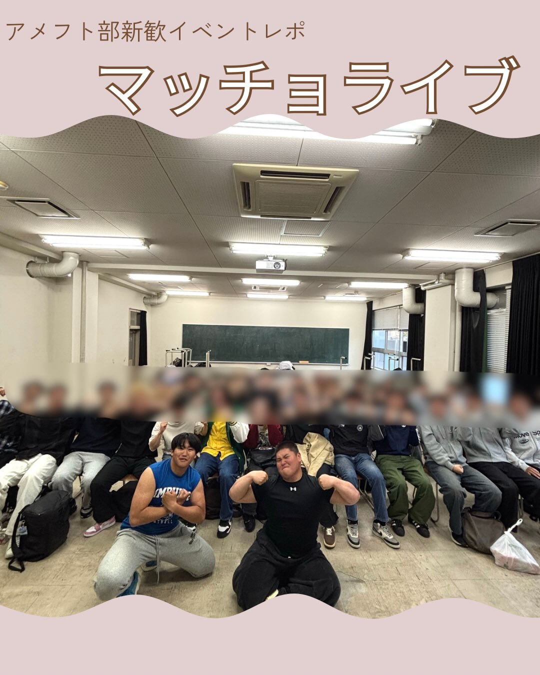 - 【イベントレポ~マッチョライブ~】 4/16(木)に、マッチョライブを開催しました! マッチョな部員と新入生が、手押し相撲や腕相撲で対決しました⚔️また、マッチョフォトなどで親睦を深めることもできました ライブではあのお笑いコンビや今話題のアイドルなどを部員が披露し、会場は大盛り上がりとなりました! 次回イベント 《徒歩中&ビンゴ》 4/18(土) 14:30~ 新潟大学五十嵐キャンパス サッカー・ラグビー場 ーーーーーーー 見学・体験いつでもお待ちしています🏻 1人でも、お友だちとでも、途中参加・退出ももちろんOKです!見学の場合は私服で、体験の場合はぜひ動きやすい格好でお越しください!動きやすい服がない場合は貸出も行います ※練習日時は変更する場合があります。見学・体験を希望する方はぜひDMへご連絡ください! 練習詳細 晴天時:五十嵐キャンパス サッカー・ラグビー場 雨天時:※練習時間、練習場所が変わる可能性があります。見学・体験希望の方はDMまでお問い合わせお願いいたします!🏻♀️ 日時:火〜木曜 17:00~ 土・日曜 9:00~ 質問などもDMでいつでも受け付けています! アメフト部のことだけでなく新生活に関することなど、どんな些細なことでもお気軽にご連絡ください!