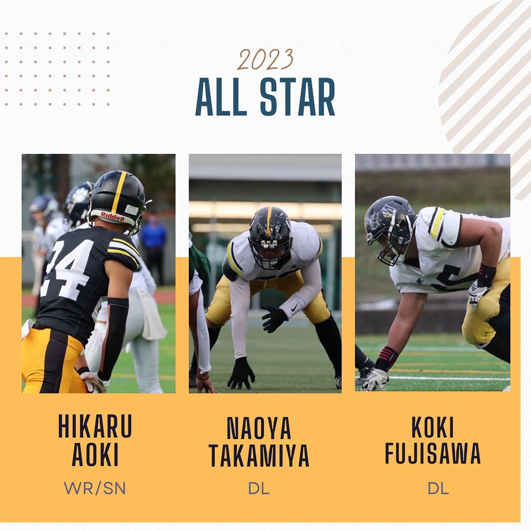 【オールスター出場】 TIGERSから3名の選手が3部オールスター戦に出場します DL 3年主将 高宮尚也(怪我のため今回はアシスタントとして参加) DL 3年副将 藤澤浩樹 WR/SN 3年 青木輝 日時: 2023/12/24(日) K.O 11時 会場: アミノバイタルフィールド 対戦: 3部A,Bブロックvs 3部C,Dブロック (TIGERSはCブロックに所属しています) 観戦をご希望される方はチケットの購入が必要となりますので、電子チケットの場合は『KCFAオフィシャルストア』にて、紙の当日券の場合は会場にてお買い求め下さい。 価格: 500円(税込) 詳しくはKCFA公式HPをご覧下さい 皆様のご声援、宜しくお願い致します #