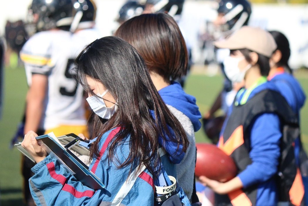 - 【マネージャーってなにするの?】 アメフト部には7名のマネージャー(MG)が所属しています!練習中のビデオ撮影やドリンクなどの選手のサポートだけでなく、広報活動や対外交渉、会計や遠征手配などチーム全体の運営に携わっています 元運動部、元文化部などバックグラウンドは様々で、MG全員が初心者からスタートしています!その分先輩がしっかり教えるので安心してくださいね❣️ MG同士でご飯に行くこともあり、学年の垣根を越えて仲良しです 新しいことを始めてみたい方や人の役に立つことが好きな方、男女問わず誰でも大歓迎です!ぜひアメフト部新歓へ…!