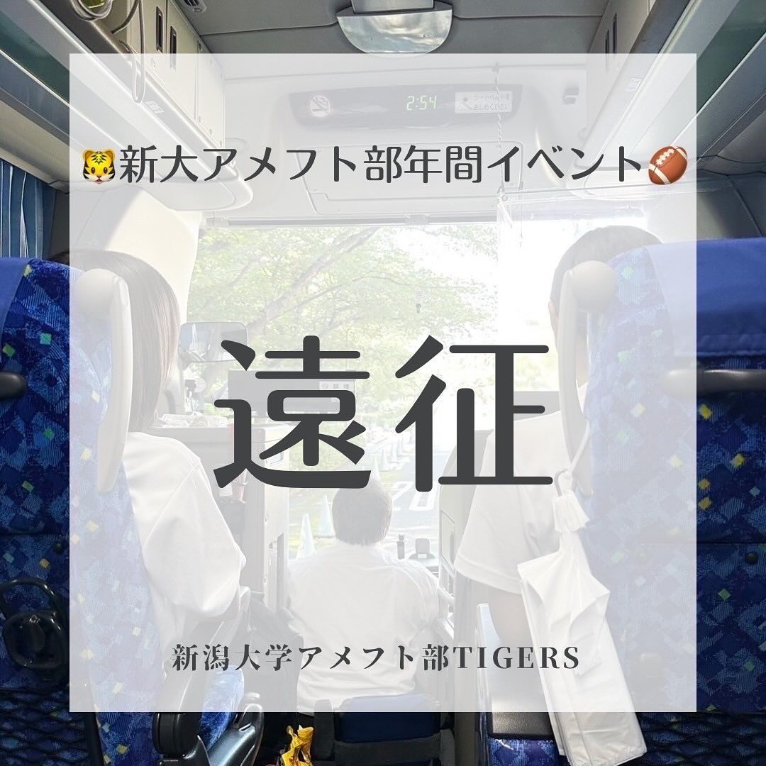 【新大アメフト部イベント紹介】 新大アメフト部には楽しいイベントが盛りだくさん!昨日に引き続き、本日もご紹介します🏻 ②遠征 練習試合の際やシーズン(試合期間)中は部員全員で関東方面に行きます! 試合に向けて前泊をすることが多いため、みんなでいっしょにごはんを食べたり、宿やバスで楽しく過ごしたりします! また、試合で見ることができる選手やスタッフのかっこいい姿は必見です… ┈┈┈┈┈┈┈┈┈┈ 見学・体験いつでもお待ちしています🏻 1人でも、お友だちとでも、途中参加・退出ももちろんOKです!見学の場合は私服で、体験の場合はぜひ動きやすい格好でお越しください!動きやすい服がない場合は貸出も行います ※練習日時は変更する場合があります。見学・体験を希望する方はぜひDMへご連絡ください 春休み期間練習(3/9~3/31) 晴天時:五十嵐キャンパス サッカー・ラグビー場 雨天時:五十嵐キャンパス第2体育館Bフロア 日時:水~日曜 9:00~12:00 質問などもDMでいつでも受け付けています! アメフト部のことだけでなく新生活に関することなど、どんな些細なことでもお気軽にご連絡ください🏻