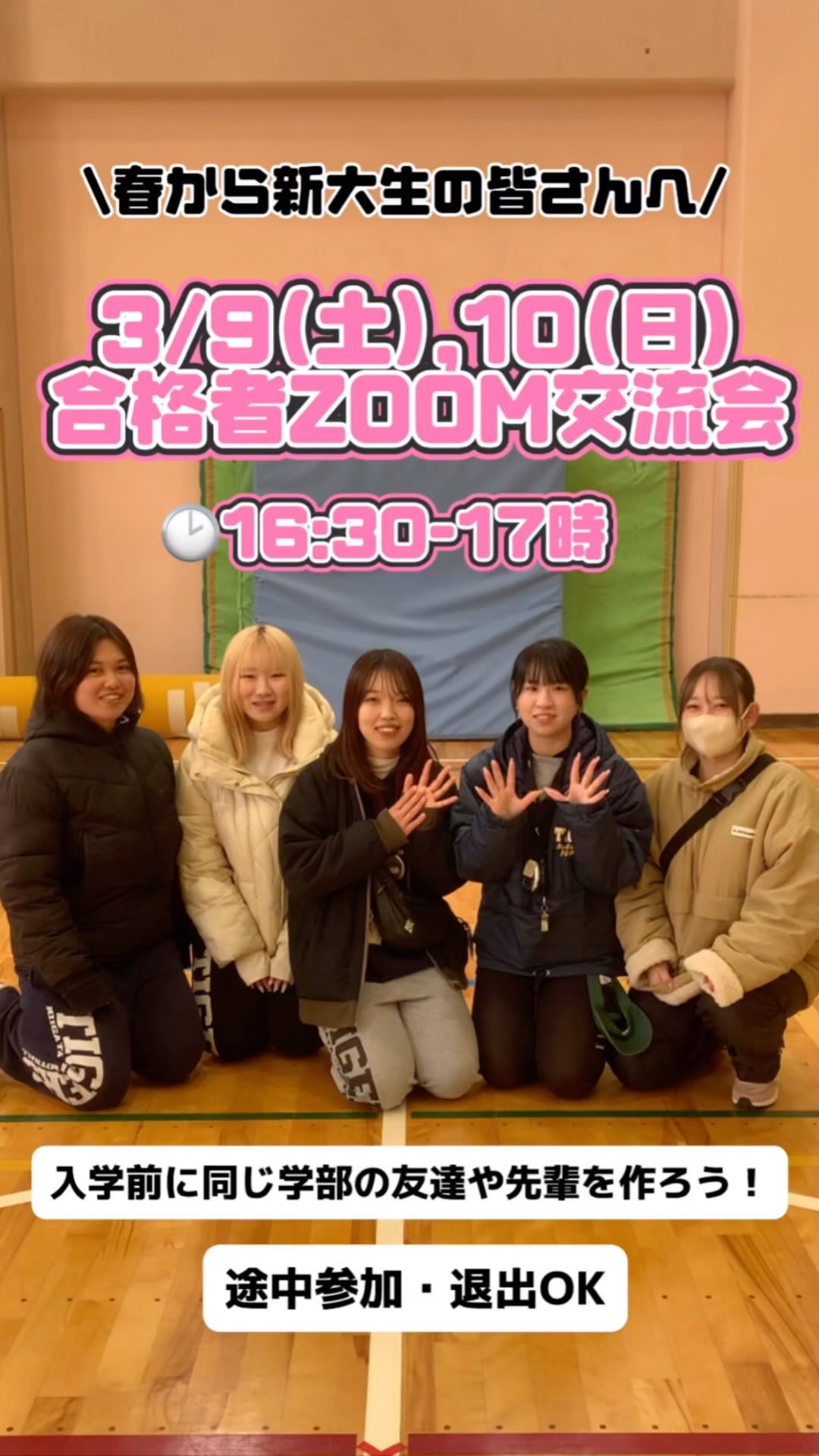 【新大合格者zoom交流会】 新潟大学を推薦入試で合格された皆さん、合格おめでとうございます また前期入試を終えた皆さん、受験勉強お疲れ様でした️ 春から新大生となる新入生に向けて、アメフト部主催のzoom交流会を開催します 3/9(土),10(日) 16:30-17時 @zoom(途中参加・退出OK) ️参加を希望される方はDM又はストーリーズのリアクションにて【当日16時】までにお知らせ下さい🕊️ zoomのリンクを共有致します! ★同じ学部の友達や先輩を作れるかも! ★大学生活の不安や心配事を現役大学生に聞くことができる! ★新生活に必要なものや一人暮らしのアドバイスを教えてもらえる! もちろんアメフトに興味がなくても全然大丈夫 男の子も女の子も誰でも大歓迎🏻🏻是非参加して、大学生活の好スタートを切ろう