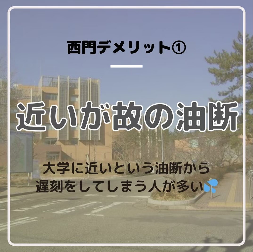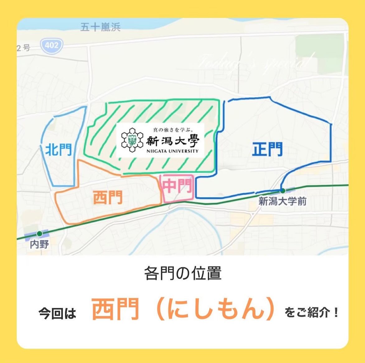 【現役新大アメフト部に聞く!新生活情報】 春から新大生のみなさん、ぜひアパート選びの参考にしてください! 第3回目は”西門編”です! ~メリット〜 ①『ここで全て完結』 セブンイレブンやココカラファイン、八百屋があるため、スーパ一が近くになくても生活に必要なものは意外と揃います!西門エリアにあるセブンのことを「西セ」と言うんだとか。 ②『コスパ最強弁当』 ボリューム満点で安くて美味しいゆうふく弁当は新大生の味方ココカラファインに行くつもりが、唐揚げの匂いに誘われて買ってしまうことも。 自炊をしたくない時はゆうふく弁当を買うべし! ③『学生密集エリア』 学生が多く住んでいるこのエリアは友人宅が近く、最初は寂しいのでみんなで集まりがち。タコパや鍋パで仲を深めちゃおう ~デメリット〜 ①『近いが故の油断』 大学に近いため、まだ寝れるだろうと油断して遅刻してしまう人が多い。いや、これは住む場所ではなく、自分の問題ですね ②『スーパーが遠い』 最寄りのスーパー(原信や清水フード)までは自転車か車が必須です!アメフト部の数名は自転車の盗難被害に遭っているため、鍵はしっかりかけましょう!🚴🏻‍♀️ ③『ファミレスが遠い』 テストや課題提出のため、図書館やファミレスで勉強することも ですが西門には夜遅くまで営業しているお店は近くにないので、夜遅くまで勉強したい時は正門エリアに行くか、1人で家or友人と頑張っています🏻 次回は”北門編”です!お楽しみに💭 #