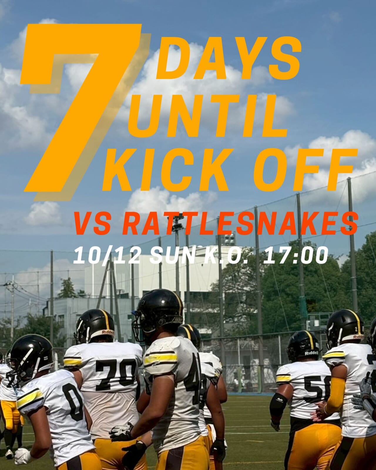 【第3節 拓殖大学戦まで残り7日】 vs Takusyoku University RATTLESNAKES 10/12 (sun) 17:00 kick off 拓殖大学戦まで残り1週間となりました! 第2節での勝利を自信に変えつつ、気を引き締めて全力で戦います 皆様ご声援の程よろしくお願いします。 -———————— 〈試合詳細〉 拓殖大学戦 〇日時 10/12 (日) K.O. 17:00 〇会場 アミノバイタルフィールド (東京都調布市西町376−3) 〜第3節 拓殖大学戦をご観戦の皆様〜 第3節は公共会場での試合となります。 観戦には電子チケットが必要になりますので、観戦希望の方は【①お名前(代表者) ②人数③交通手段】をメール(niigata.tigers@gmail.com)にてご連絡ください また、アミノバイタルフィールドには駐車できかねますので、恐れ入りますがお近くのパーキングをご利用ください。 #