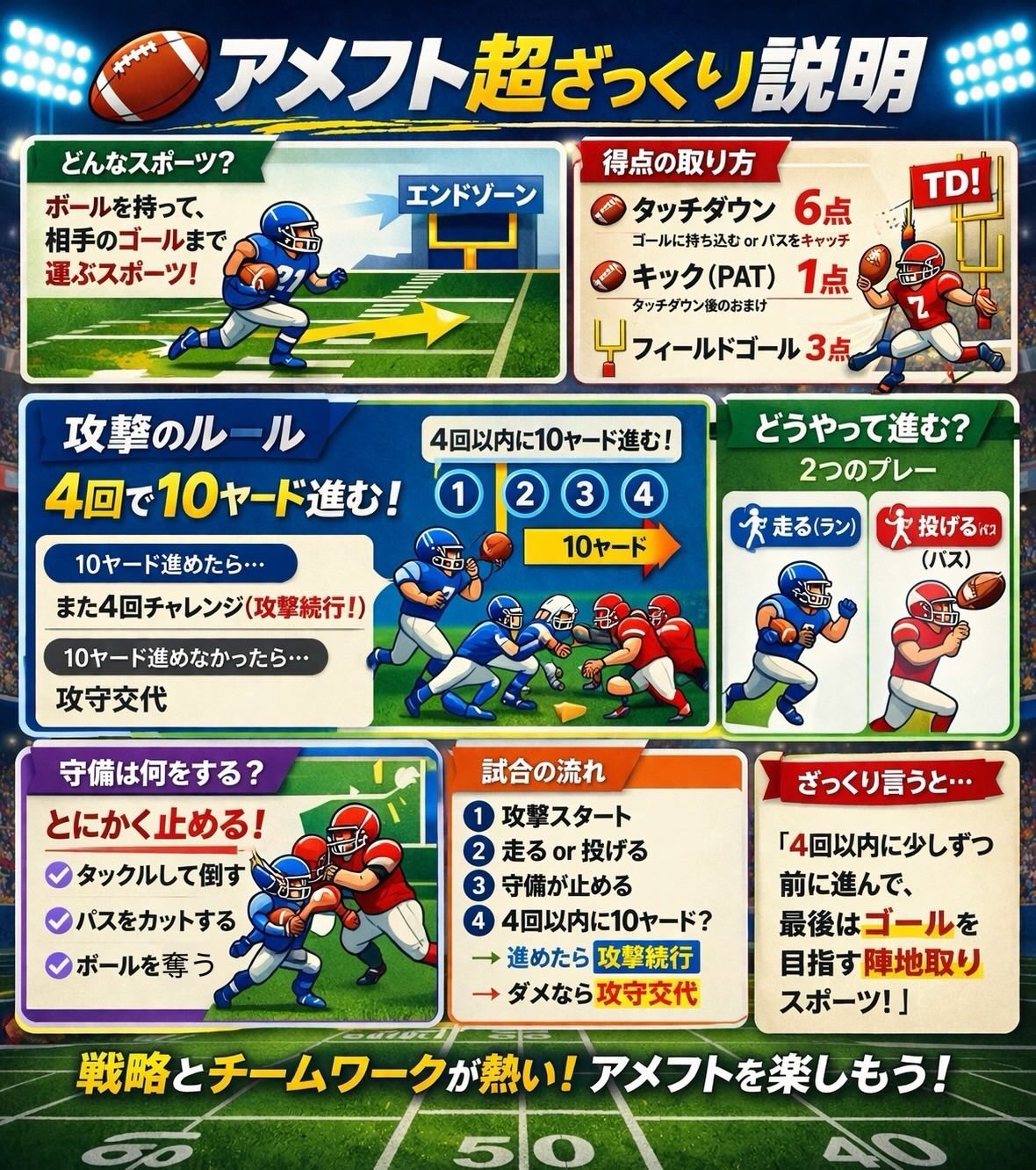 【黎明祭 新歓試合】 いよいよ明日は黎明祭での新歓試合です! 勝利を掴むため、選手はたくさん練習を重ねてきました🏻スタッフも試合の運営のため、それぞれの仕事を全うします!普段はフレンドリーな部員たちの、かっこいい姿をぜひご覧下さい 14:00にサッカー・ラグビー場でキックオフ途中参加・退出も可能です! ーーーーーーー 見学・体験いつでもお待ちしています🏻 1人でも、お友だちとでも、途中参加・退出ももちろんOKです!見学の場合は私服で、体験の場合はぜひ動きやすい格好でお越しください!動きやすい服がない場合は貸出も行います ※練習日時は変更する場合があります。見学・体験を希望する方はぜひDMへご連絡ください! 練習詳細 晴天時:五十嵐キャンパス サッカー・ラグビー場 雨天時:※練習時間、練習場所が変わる可能性があります。見学・体験希望の方はDMまでお問い合わせお願いいたします!🏻♀️ 日時:火〜木曜 17:00~ 土・日曜 9:00~ 質問などもDMでいつでも受け付けています! アメフト部のことだけでなく新生活に関することなど、どんな些細なことでもお気軽にご連絡ください!
