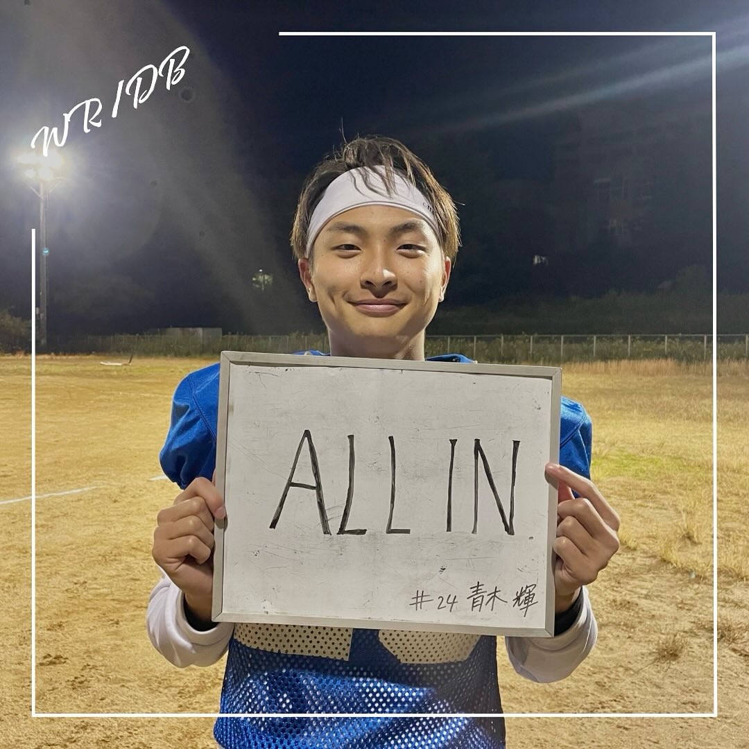 - 【4年間を振り返って Vol.1🎞️】 本日より今年度引退する4年生総勢8名の4年間を振り返った想いをご紹介します また、2,3枚目はそれぞれ1年生と4年生の頃の写真を載せています。併せてご覧ください 4年 WR/DB 青木 輝 『ALL IN』 #