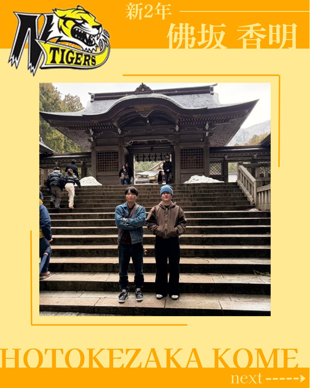 【TIGERS 2026 部員紹介】 新2年選手編④ 佛坂香明 自分を表す3つのワード ️自由 ️気分屋 ️フッ軽 ・出身:栃木県 ・MBTI:ENFP ・高校部活:バスケ ・学部・学年:経済科学部2年 ・ポジション:WR/DB ・入部理由:楽しそうだったから ・入部してよかったこと:友達がたくさんできた ・好きな曲: Eve,Psyche & The Bluebeard's wife ・アルバイト:マクドナルド 新入生へのメッセージ →たのしいよ