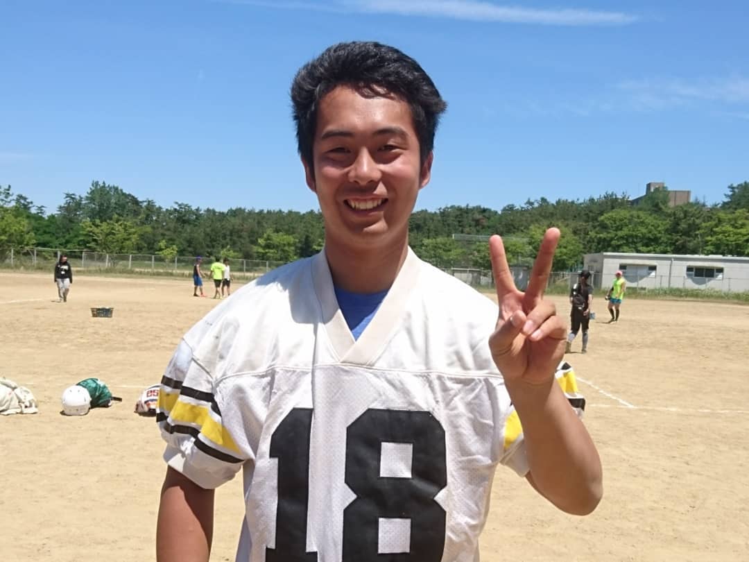 こんにちは。QBポジションリーダーの藤田健介です。ラストはQBに入ってくれた1年生を紹介します!