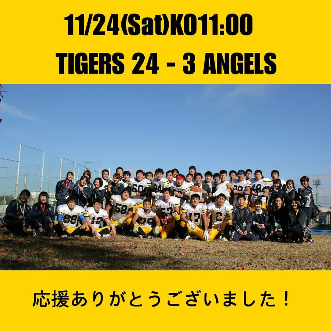 11/24(土)に行われた亜細亜大学戦は、24-3で勝利することができました️今シーズンの試合はこれで終了となります。沢山の応援ありがとうございました 最終結果は3部Bブロック4位と目標である二部昇格には届きませんでした。今シーズンの反省をしっかりと行い、来シーズンの目標達成に向け準備を行っていきます。これからもタイガースをよろしくお願い致します。