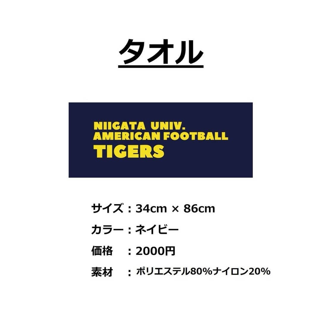 - 2018年ver.タイガースグッズの作成が決まりました! 販売ページはこちら↓です! https://ngtfootball.official.ec/ 部員も使用・着用するグッズです!ご家庭で、試合会場で、身につけることでTIGERSをご支援いただけると幸いです。 ※作成期間の都合上、お渡しは9月中旬以降となる予定です。 ※お支払方法は「クレジットカード」「銀行振込」「コンビニ・Pay-easy決済」「キャリア決済」「後払い決済」をご利用いただけます。詳しくは販売ページをご覧ください。 勝手ながら、送料及び振込手数料はご購入者様負担とさせて頂きます。 ※入金が確認でき次第、商品の発送をさせて頂きます。発送まで時間がかかることがありますのでご了承ください。 また、グラウンドで直接お渡しすることも可能です。メールアドレス( niigata.tigers@gmail.com )もしくは販売ページ備考欄等よりご相談ください。 ※返品や交換は承ることができません。お間違いのないようよろしくお願いいたします。