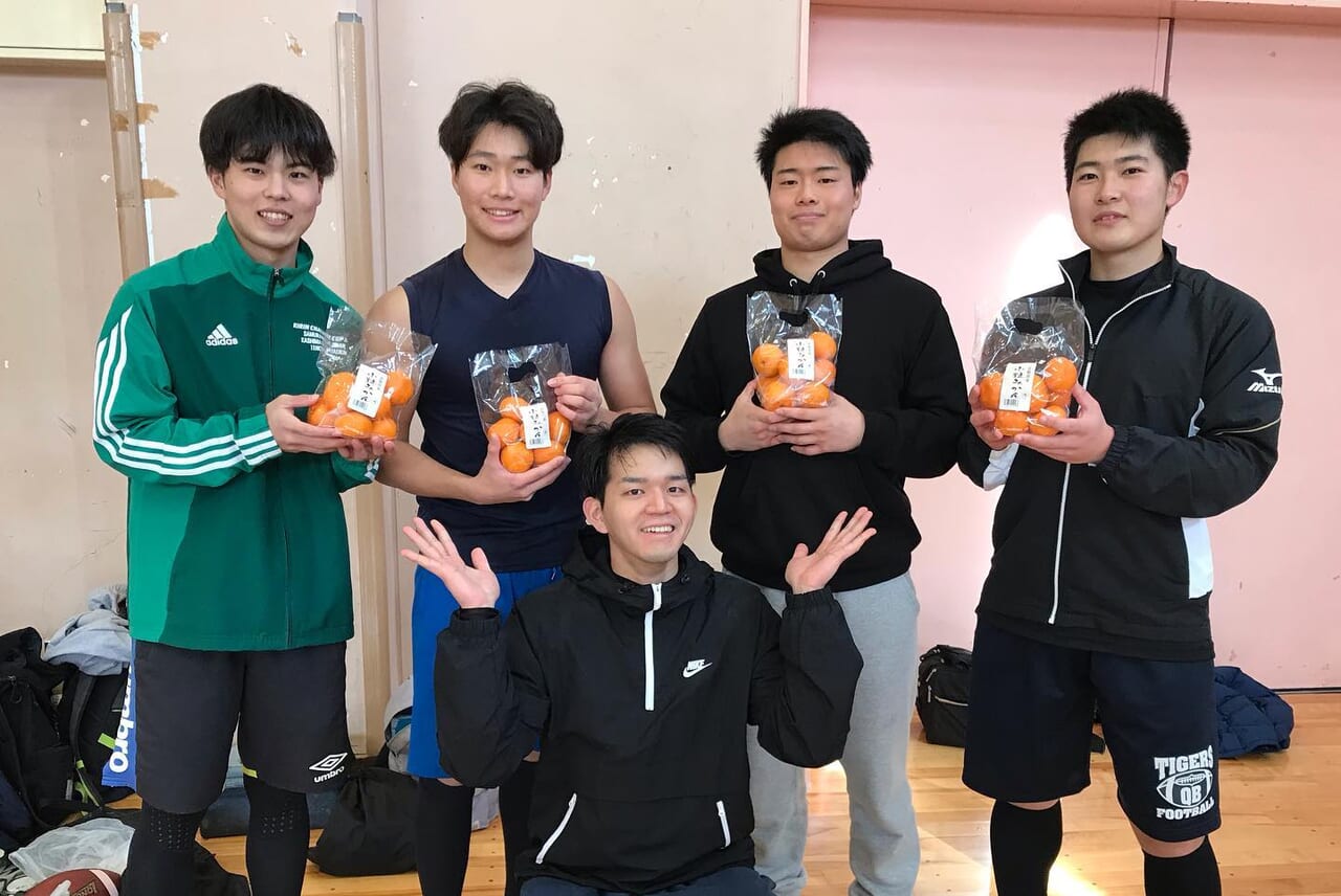 OBの岩内様からみかん、OGの渡辺様からカロリーメイトの差し入れをいただきました!ありがとうございます! 明日からテスト期間のオフに入りますが、体を一段と大きくし、しっかりとケアを行ってコンディションを整えます