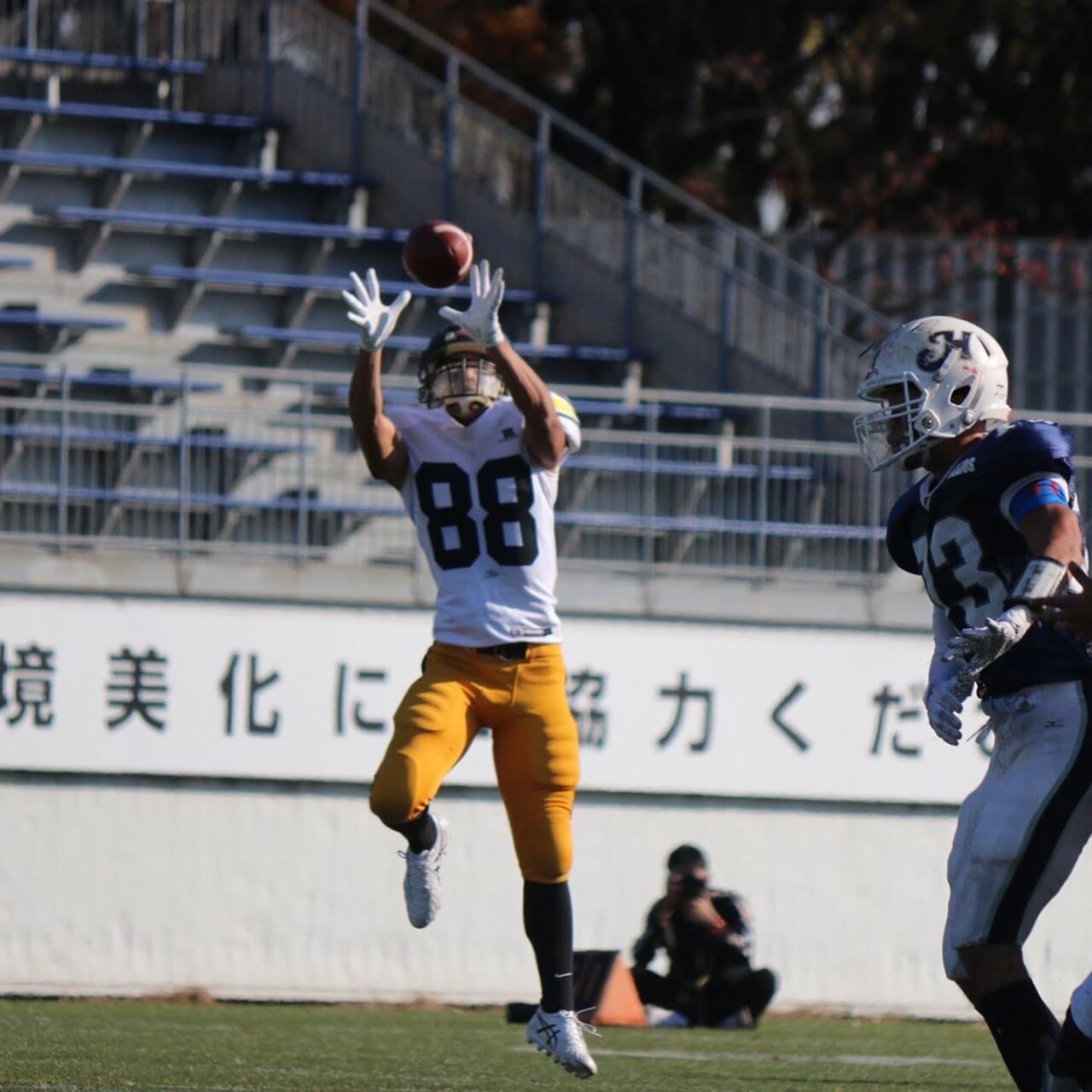 - . . WR(ワイドレシーバー) . . パスキャッチの主役であり、キャッチングセンスや相手ディフェンスを振り切るスピードが求められるポジション。ロングゲインでチームに流れをもたらします!