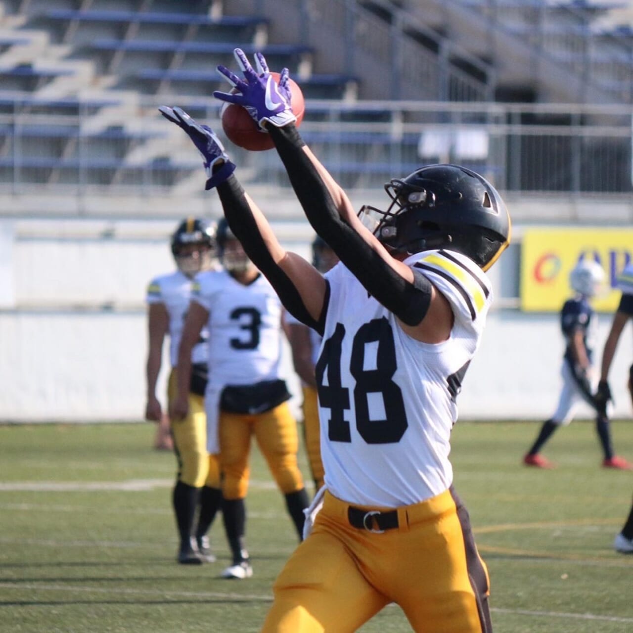 . . WR(ワイドレシーバー) . . パスキャッチの主役であり、キャッチングセンスや相手ディフェンスを振り切るスピードが求められるポジション。ロングゲインでチームに流れをもたらします!